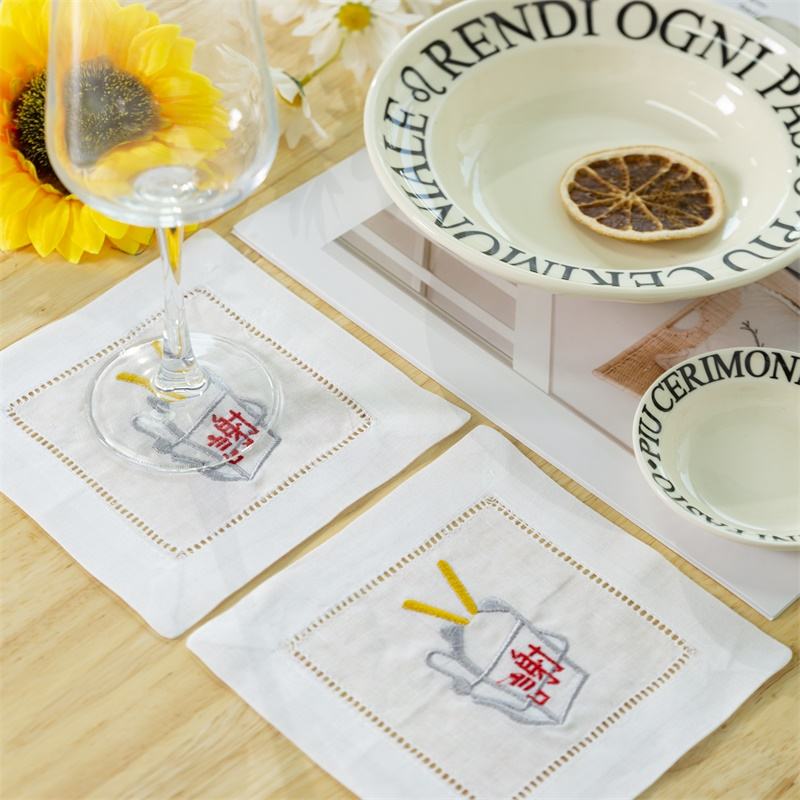 Product Name:Cotton Linen Embroidered Logo Cocktail Coaster Napkin