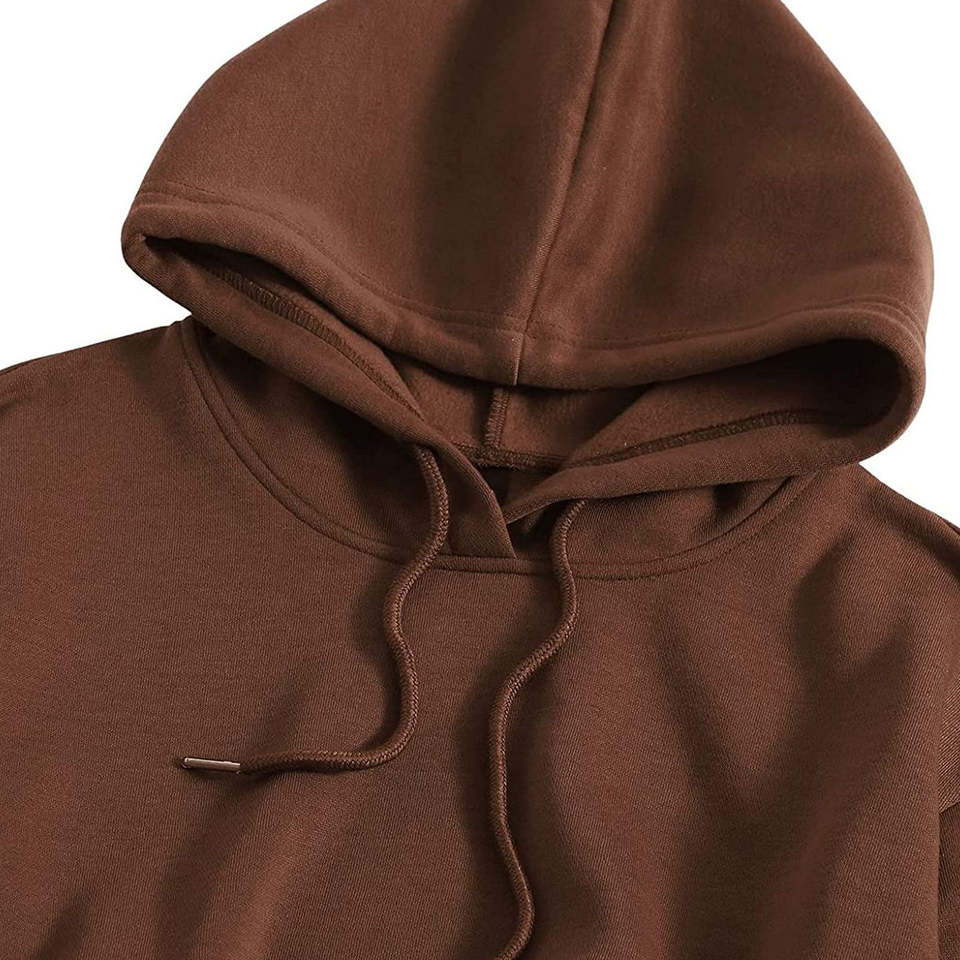 Wholesale Knitted Cotton Long Sleeve Hooded Tracksuit Cropped Women's Jogger Sweatshirt Custom Logo Hoodie