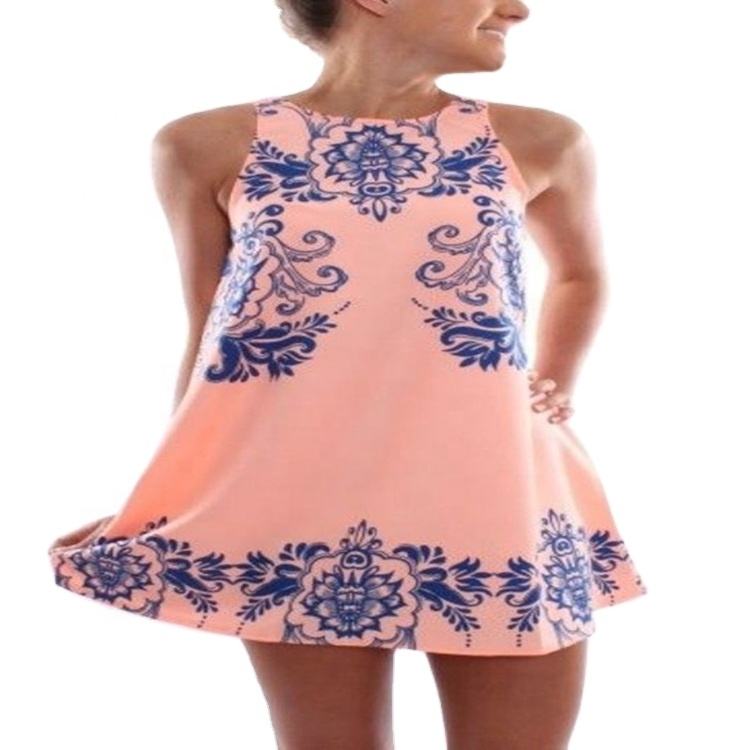 Wholesale Cotton Summer Maxi Dress for Ladies Casual Knee-Length Sleeveless with Neck Custom Printed Digital Printing Washable