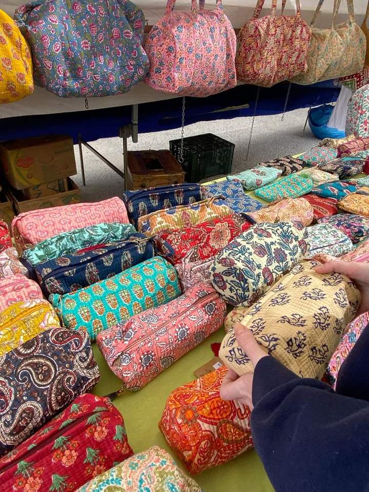 Wholesale Cotton Women Travel Makeup Toiletry Pouch Custom Handmade Monogram Floral Quilted Cosmetic Bag