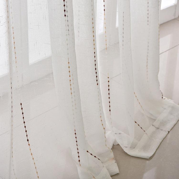 Wholesale Cotton and Linen Window Striped Yarn Pure Color Sheer Curtain