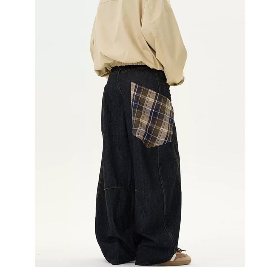 Wholesale Coutom Baggy Jeans Patchwork Khaki Lattice Streetwear Hip Hop Pants Cotton Trouser for Men Men's Denim