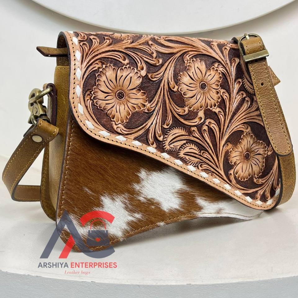 Product Name:Hand Tooled Leather Crossbody Clutch Bag