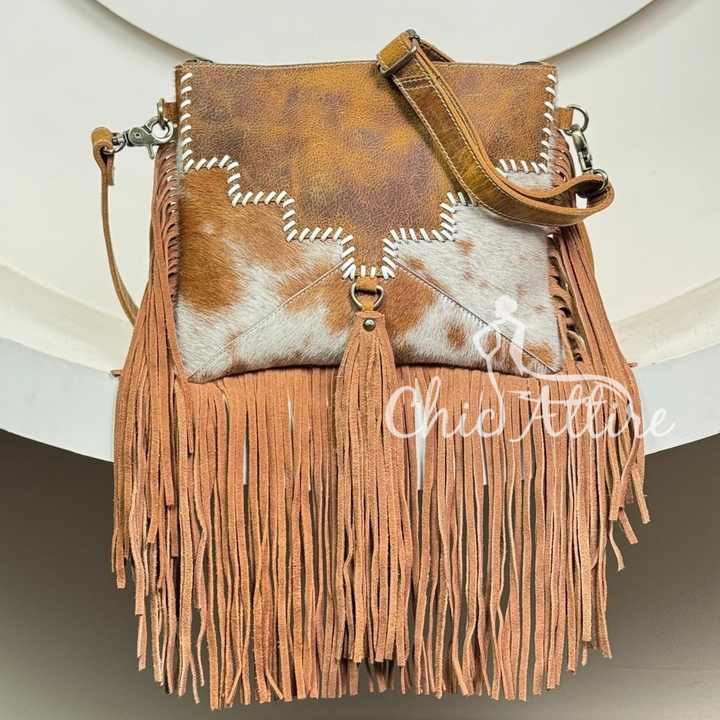 Wholesale Cowhide Leather Shoulder Bag Western Collection Fringe Crossbody Bags Genuine Leather Cowgirl Style Women Sling Bag