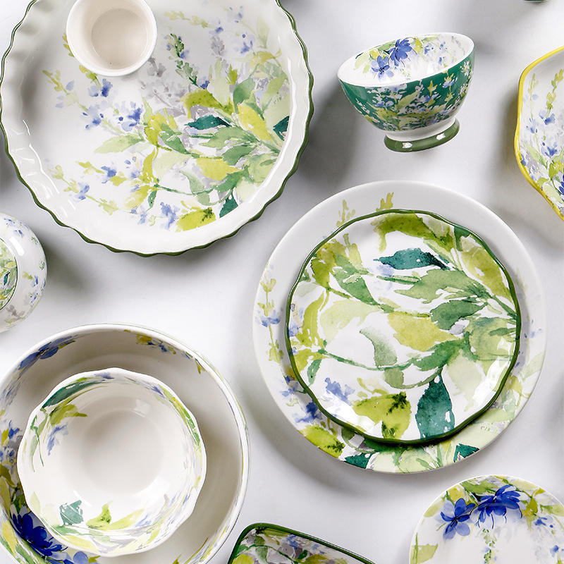 Wholesale Creative Small Fresh Pasta Plate Countryside Style Deep Plate Personalized Ceramic Tray Fruit and Flower Tea Set