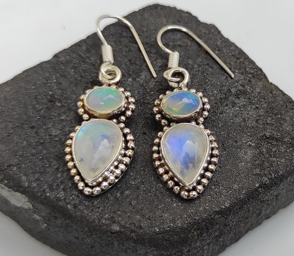 Wholesale 925 Sterling Silver Rainbow Moonstone Bohemian Dangle Drop Earrings Pear Shape Gemstone Fashion Jewelry Unisex Gift