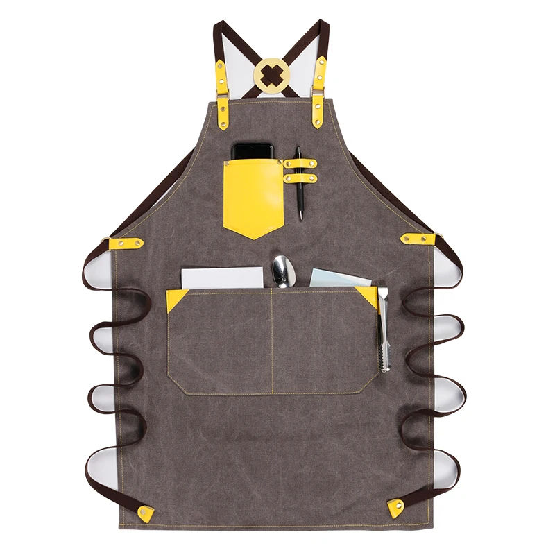 Wholesale Cross Back Chef Cooking Apron Heavy Duty Waterproof Canvas Aprons Men Carpenter Work Apron With Tool Pockets