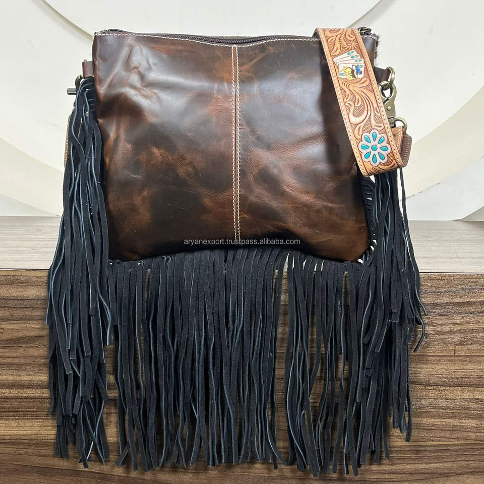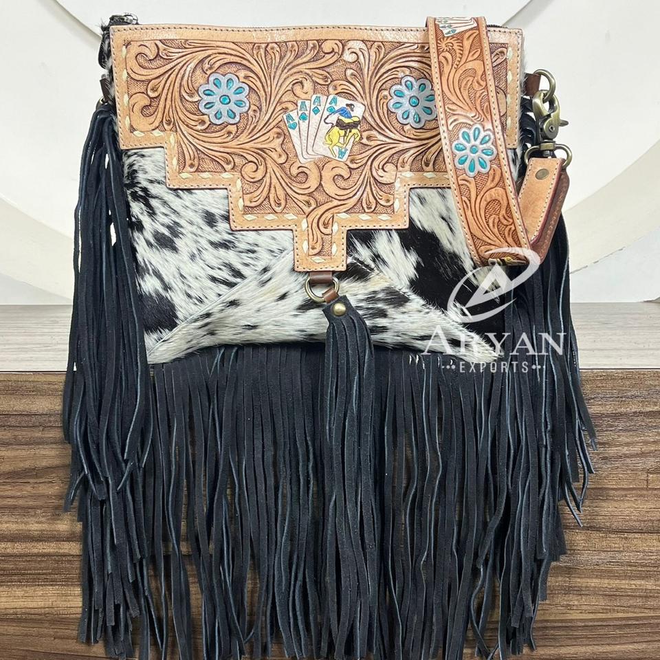 Product name:Hand Tooled Cowhide Leather Fringe Shoulder Bag