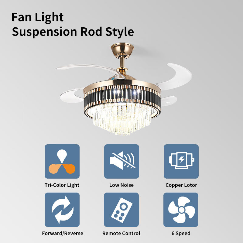 Wholesale Crystal Chandelier Ceiling Fan Retractable Modern 42\" 48\" LED Dimmable 6 Speed DC Motor Remote Control Living Room