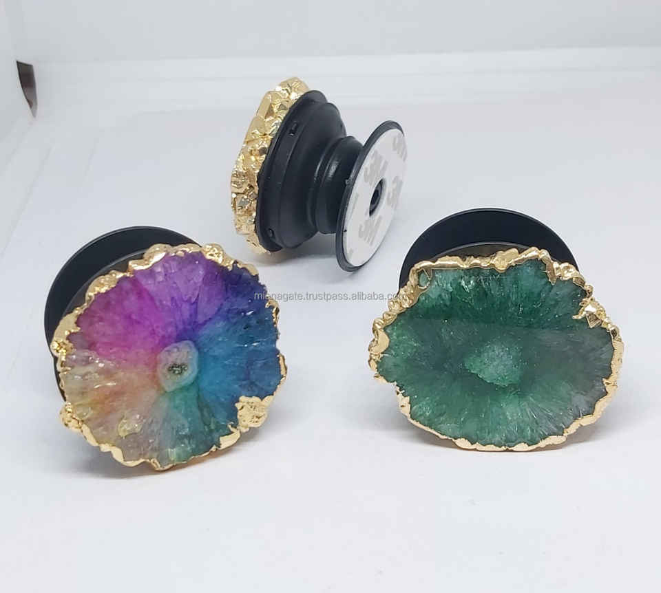 Wholesale Crystal Mobile Phone Holder Natural Solar Quartz Premium Quality Beautiful Gemstone Cell Phone Grip Popping Socket