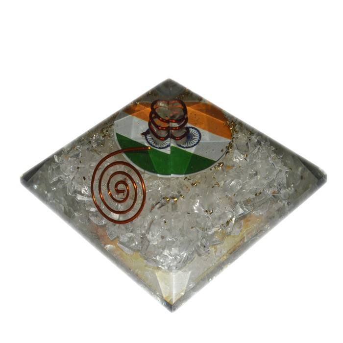 Wholesale Crystal Quartz Orgone Energy Pyramid with India Flag | Chakra Healing & Metaphysical Decor