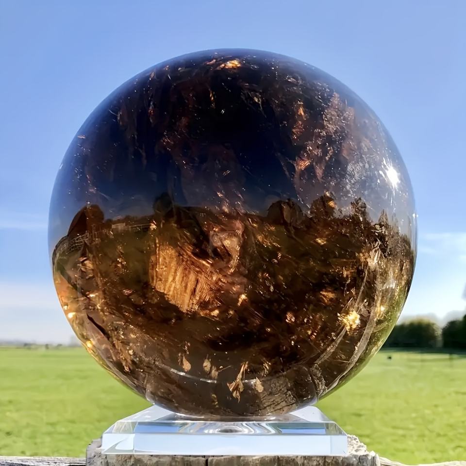 Wholesale CrystalHola 8-8.5cm Transparent Grey Witchy Things Smoky Crystal Ball Feng Shui Collectible for Home Decoration
