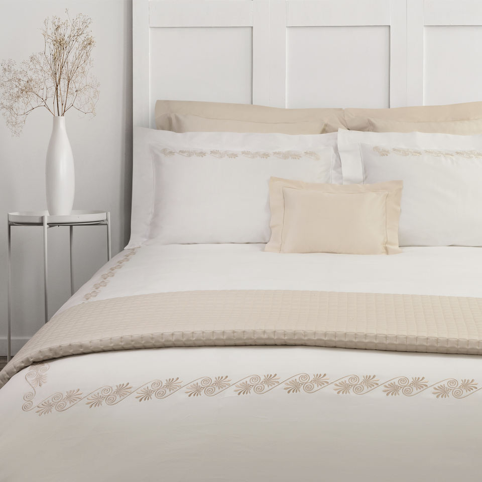 Wholesale Custom 100% Cotton Bedding Sets Beige Pattern Embroidered Duvet Cover and Pillowcases for Home Hotel Wedding
