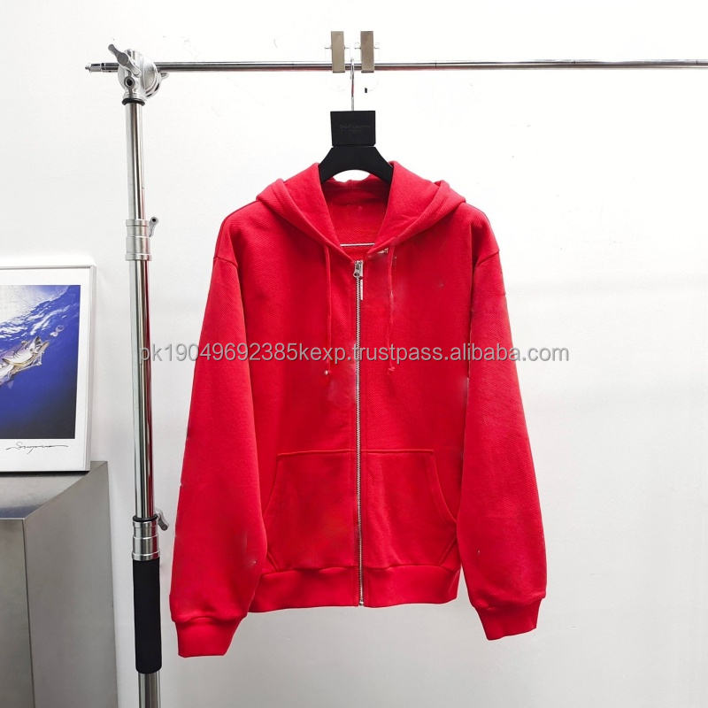 Wholesale Custom 100% Cotton Oversize Casual French Terry Hoodies Zipper Design with for Puff Print Flower for Men and Women