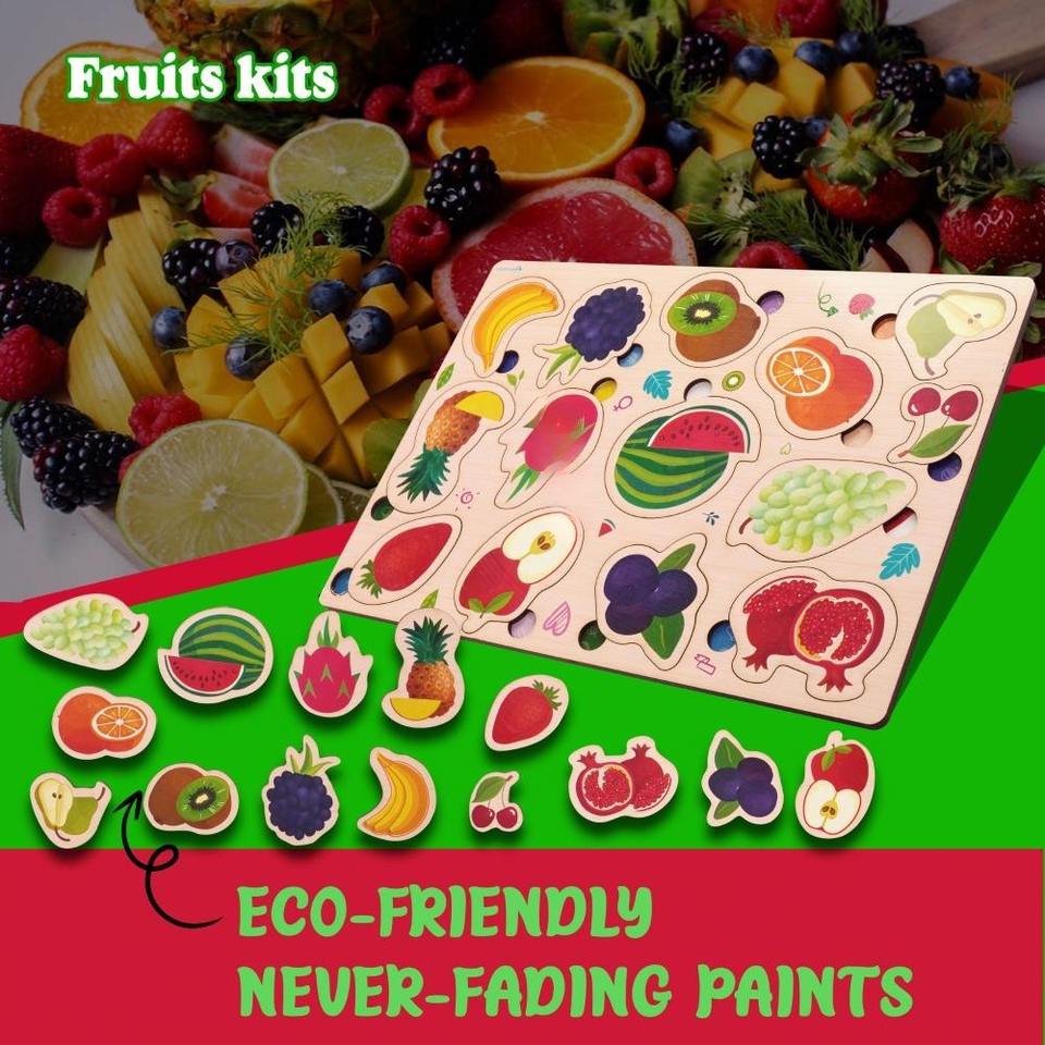 Wholesale Custom 14 pcs Wooden Educational Toys Popular fruits kits Puzzle OEM ODM Puzzle Factory Supplier