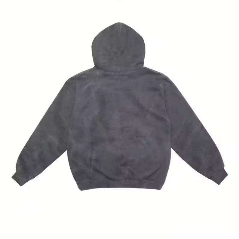 Wholesale Custom 2025 Girls Baggy Style Winter Fleece Hoodie Acid Wash Sun Fade Drop Shoulder Rhinestone Distressed Breathable