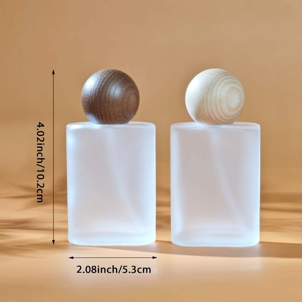 Wholesale Custom 30Ml 50Ml Wooden Cap Fragrance Empty Frosted Flat Square Womens Luxury Perfume Glass Bottles with Box