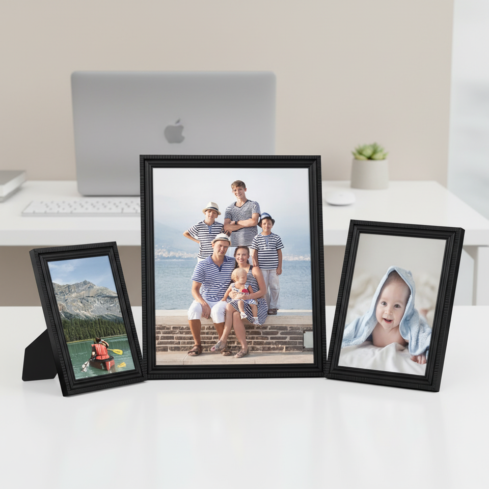 Wholesale Custom 4X6 PS Plastic Photo Frame in Black Gray & White with Easy Assembly Wood & Silver Materials