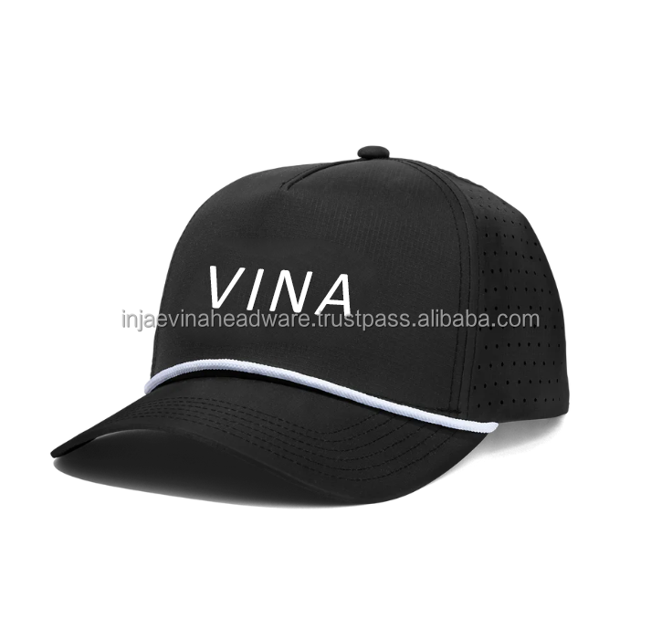 Wholesale Custom 5 Panel Golf Hat 3D Embroidery Print Logo Multi-Color Curved White Rope Brim ODM Injae Vina Vietnam Hat Factory