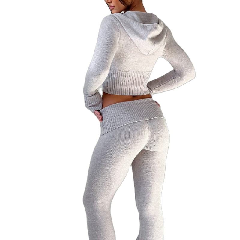 Wholesale Custom Autumn and Winter New Solid Color Short Hooded Top Casual Pants Suit Two Piece Set Women 2026