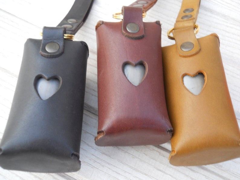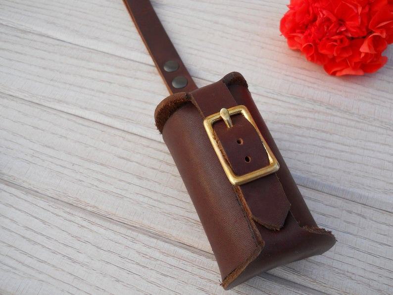 Wholesale Custom Biodegradable Brown Leather Roll Dog Poop Waste Bag Holder Leash Attachment POP-0021