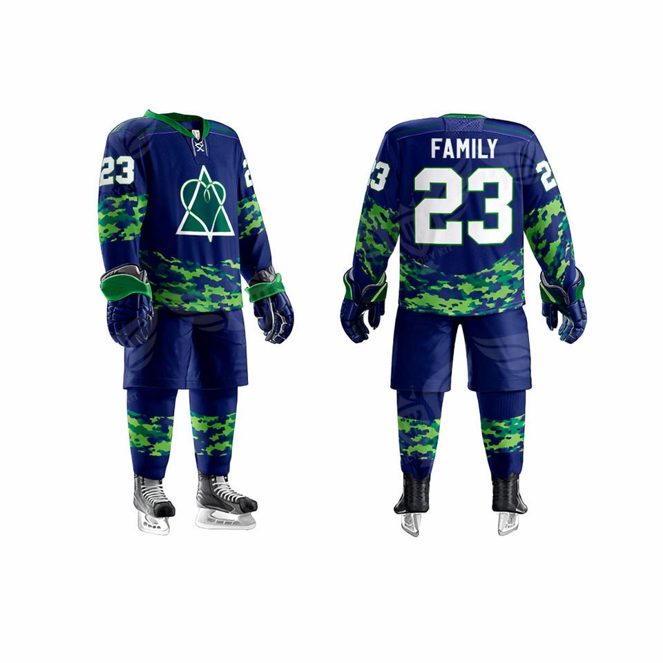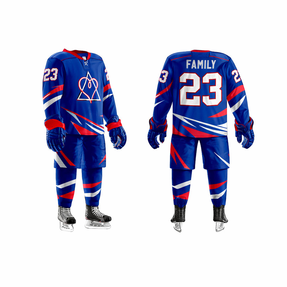 Wholesale Custom Blue Ice Hockey Uniform Set Personalized Jersey Pants & Socks with Name and Number