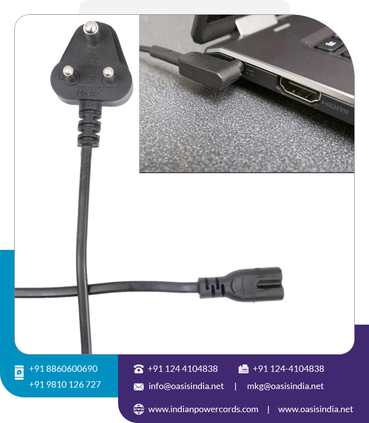 Wholesale Custom Brands ISI Approved 3-Pin Indian Plug IEC Laptop PC Power Cords Consumer Electronics Compatible C7 Power