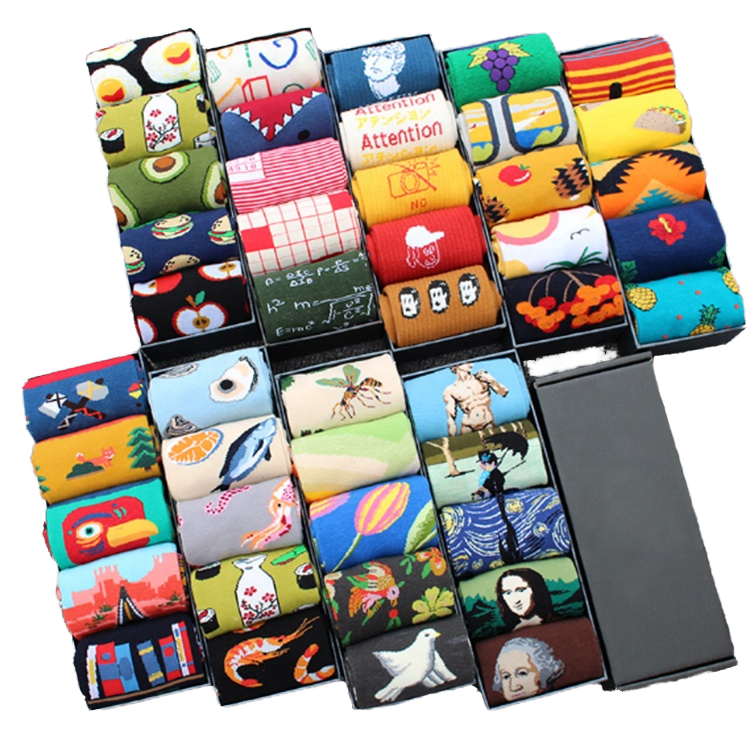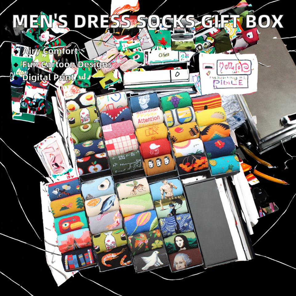 Wholesale Custom Business Use Dress Socks for Men Breathable Crew High Cartoon Pattern Bottom Cuff Spandex/Polyester/Cotton