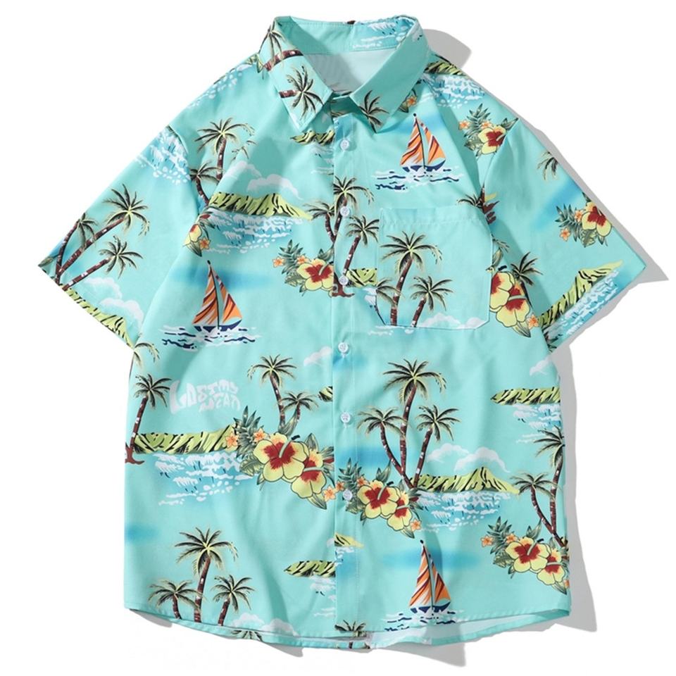 Wholesale Custom Buttons Pocket Casual Beach Shirts Printed OEM Spring Summer Men Resort Hawaiian Shirts 5XL