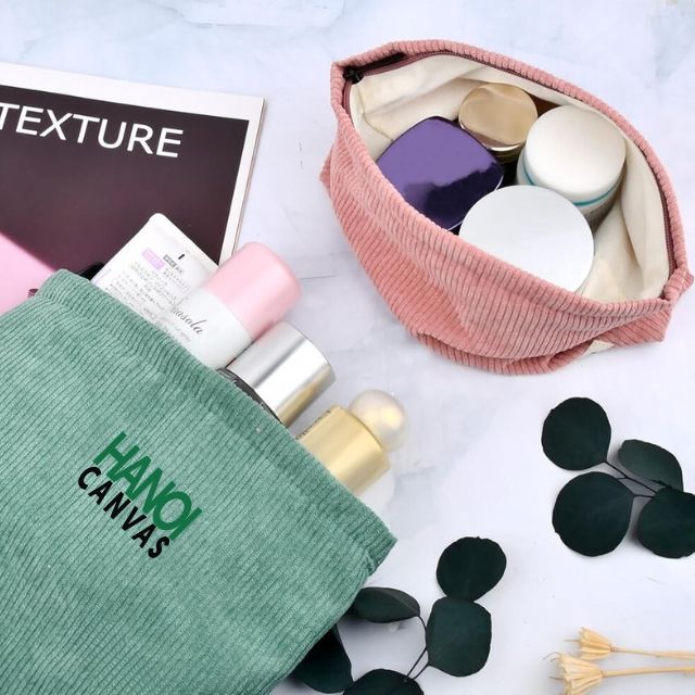 Wholesale Custom Canvas Corduroy Cosmetic Bag Zipper New Design Travel Makeup Case OEM ODM Fashion Style Ha Noi Canvas 500pcs