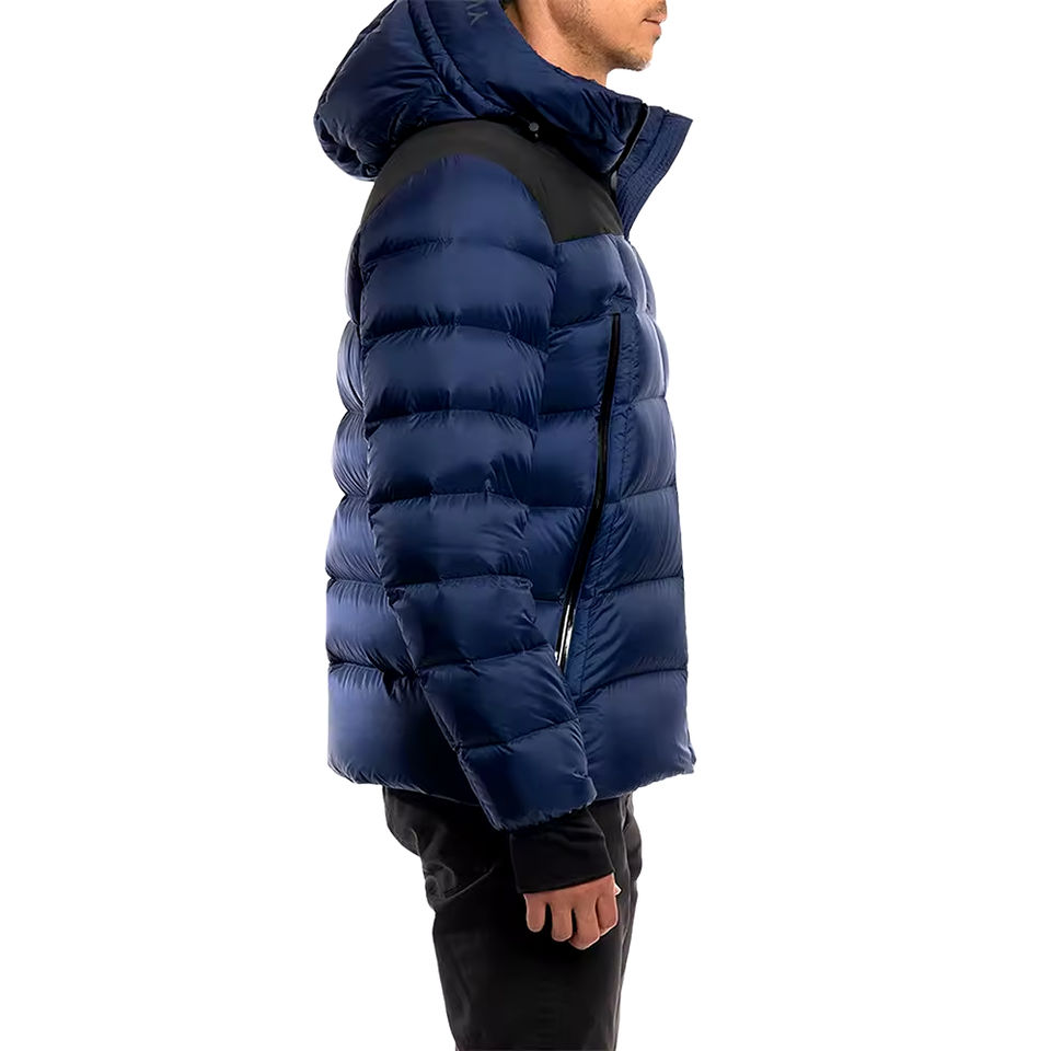 Wholesale Custom Thin Puffer Jacket for Men Canvas Material Lightweight Quilted Oversized Hood Stand Collar Front Zipper High