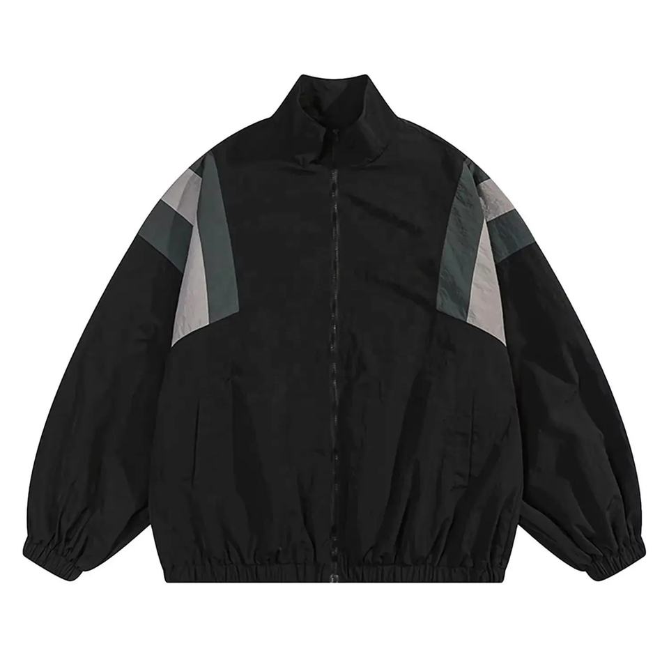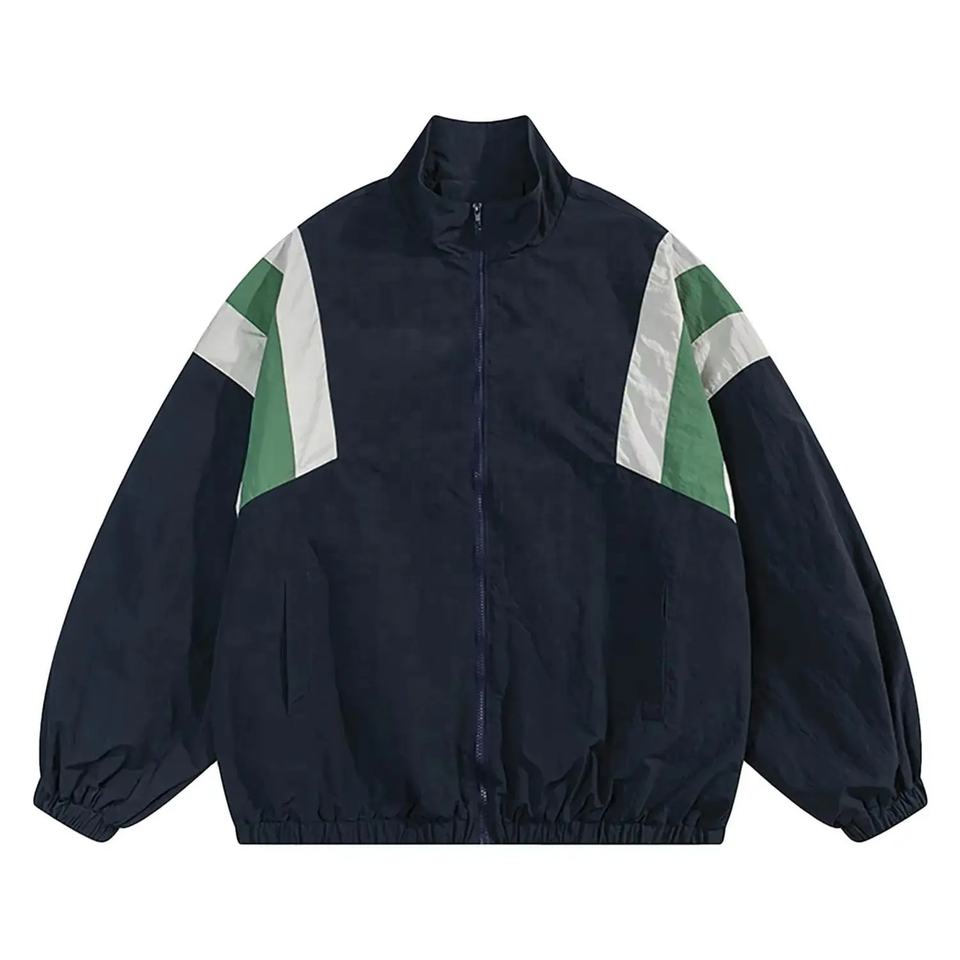 Wholesale Custom Canvas Windbreaker Jacket 100% Cotton Breathable Color Block Plus Size Stand Collar Anorak for Men
