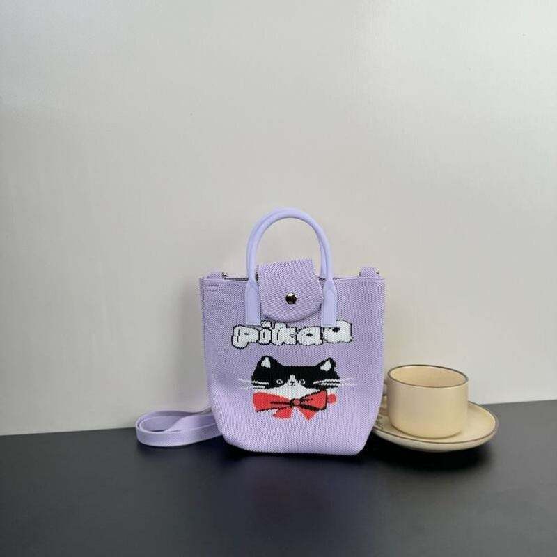 Wholesale Custom Cartoon Printed Crossbody Bag for Ladies Cute Knitted Tote Handbag with Open Closure and Polyester Lining