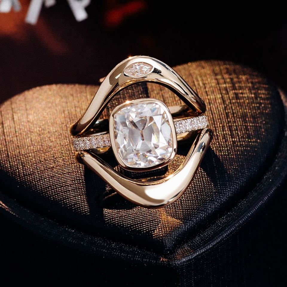 Wholesale Custom Chunky 10k 14k 18k Yellow Gold Moissanite Diamond Engagement Rings Hand Ring Set for Woman Jewelry Ring
