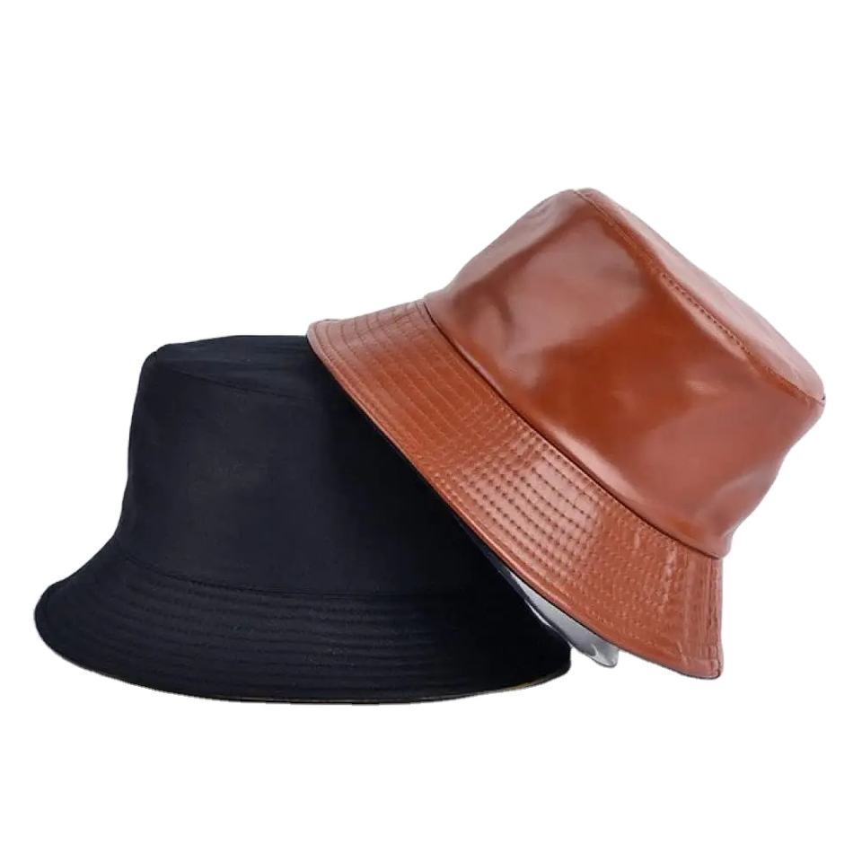 Wholesale Custom Color Cotton Bucket Hats with PU Leather for Outdoor Sports & Cycling High-quality Unisex All Seasons