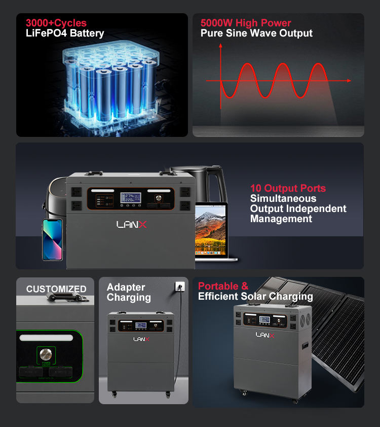 Wholesale Custom Color LiFePO4 Energy Storage 5000W Solar Energy System Iron Home Outdoor Shopping Mall Solar Power Station