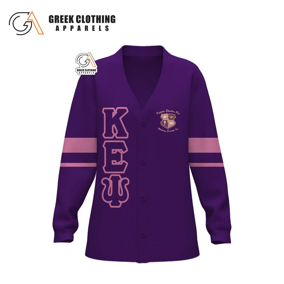 Wholesale Custom Cotton Kapa Epsilon Psi Embroidery Patches Shawl Collar Cardigan Button-up Letterman High-Quality Sweater OEM