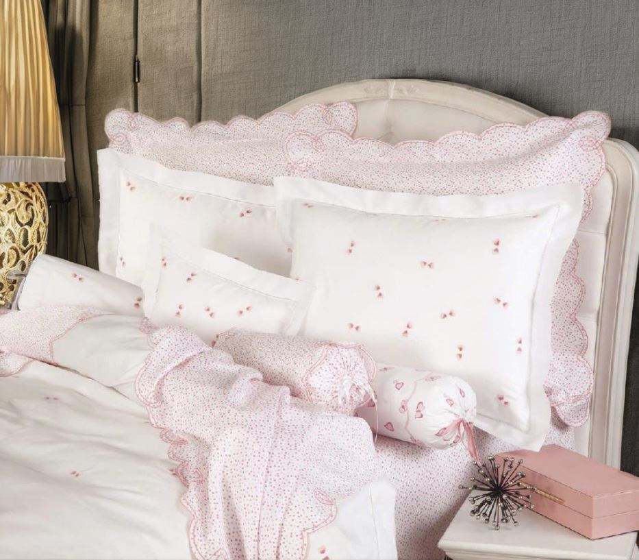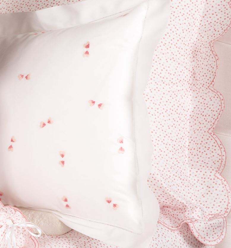 Wholesale Custom Cotton Sateen Bedding Sets Embroidered Lovely Pink Hearts Duvet Cover and Pillowcases for Home Hotel Wedding