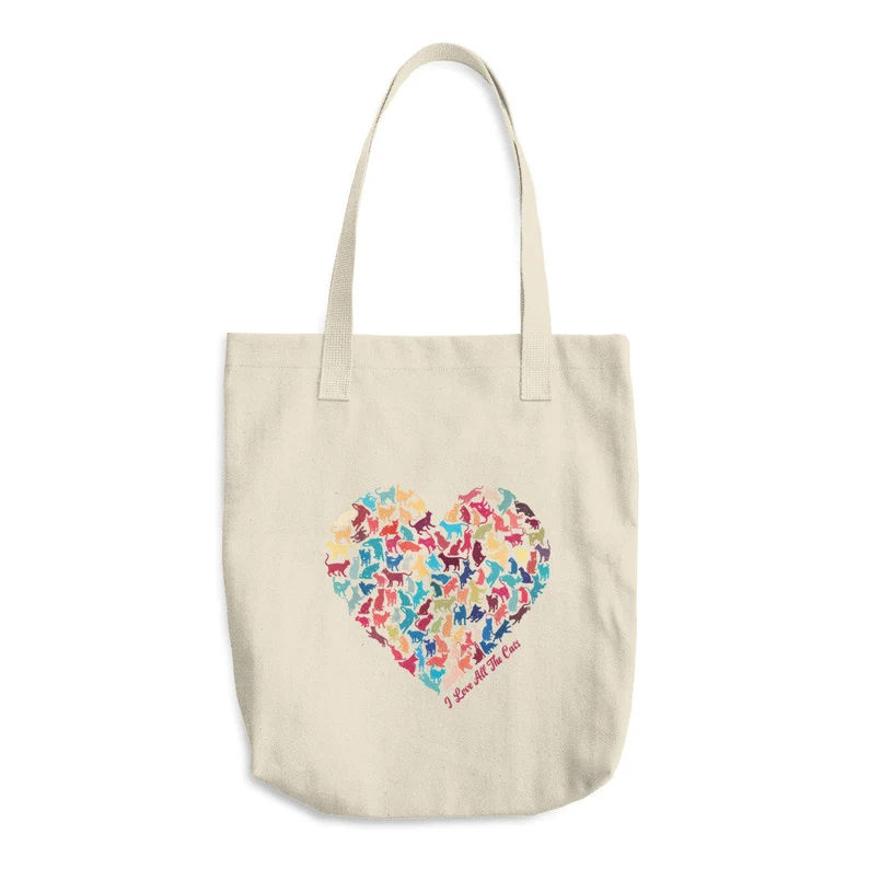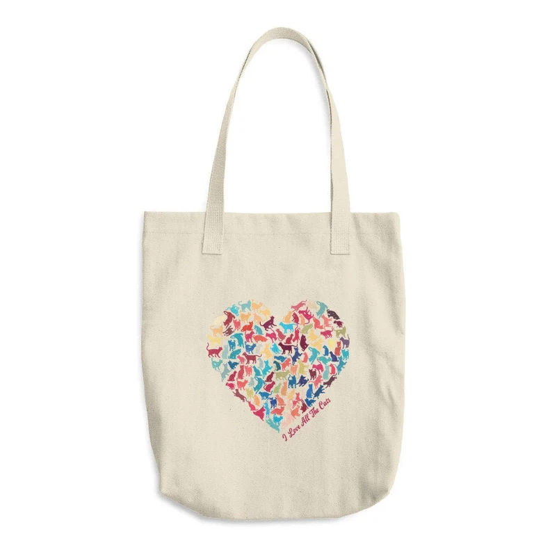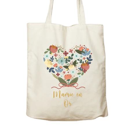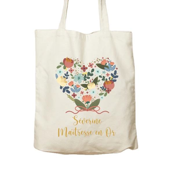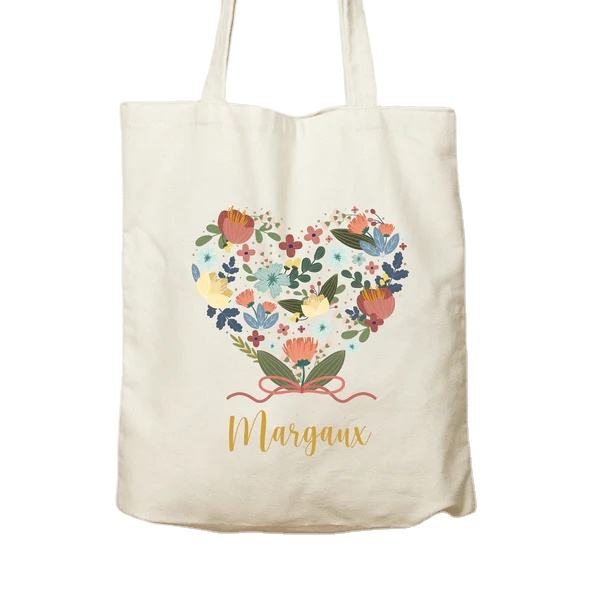 Wholesale Custom Cotton Stitch Tote Bag with Floral Heart Print Mamie en Or Design Reusable Eco Friendly Shopping Shoulder Bags