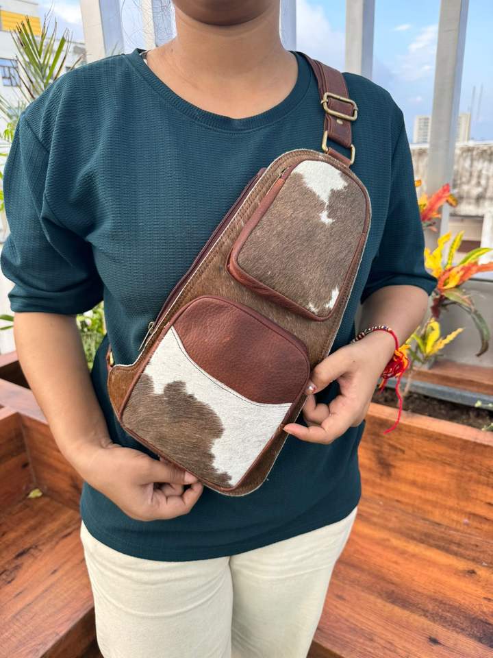 Wholesale Custom Cowhide Leather Crossbody Sling Bag High Quality Genuine Leather Chest Bag Outdoor Travel Hiking Bag for Unisex