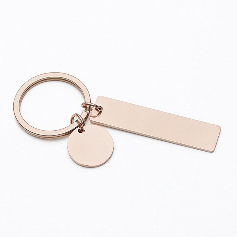 Wholesale Custom DIY Blank Stainless Steel Rectangle Anti-Lost Keychain Gold Color Small Pendant Laser Engraved Fashion
