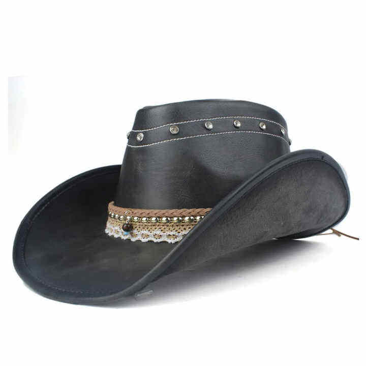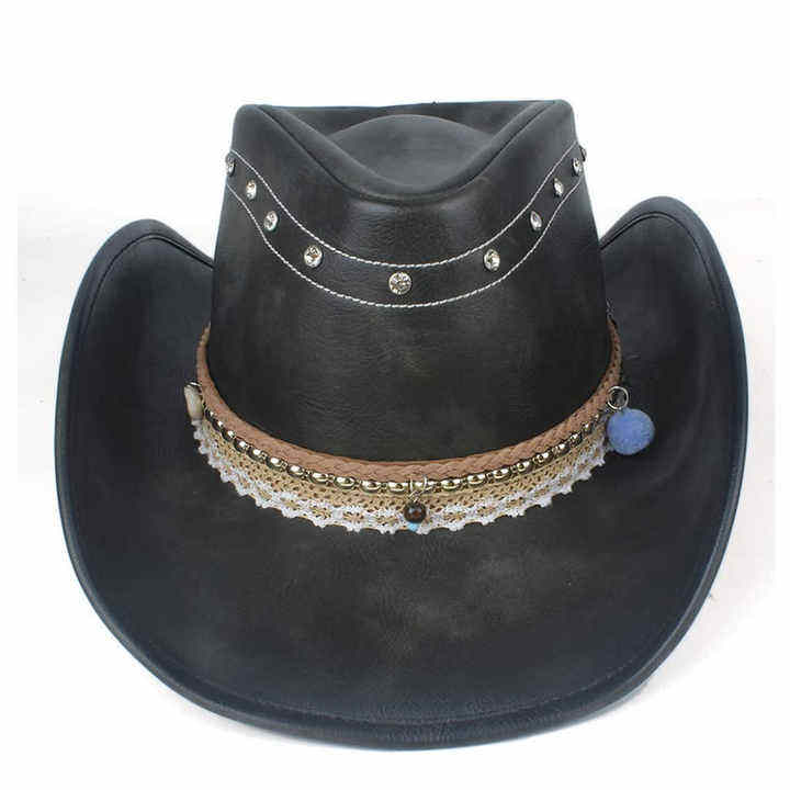 Wholesale Custom Design Men's Western Cowboy Hat Gentleman Lady Winter Jazz Cowgirl Leather Cloche for Outdoor Church Attendance