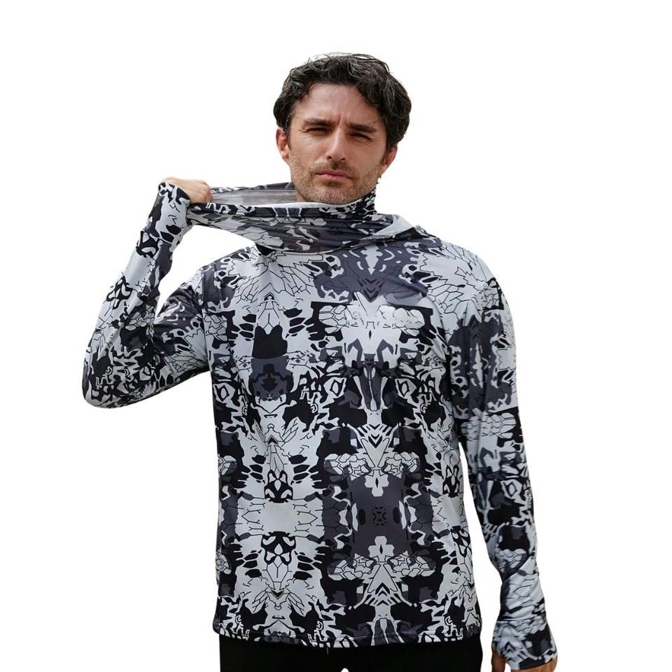 Wholesale Custom Design Sublimated Long Sleeve Bass Fishing Jersey Hood Face Cover Spandex/Polyester Waterproof Fishing Shirt