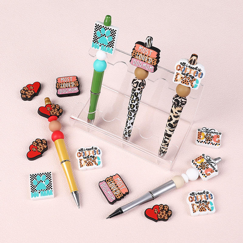 Wholesale Custom Dog Claw Square Silicone Beads Pens DIY Beadable Crafting Pens with Focal Beads Keychain Beads Colorful