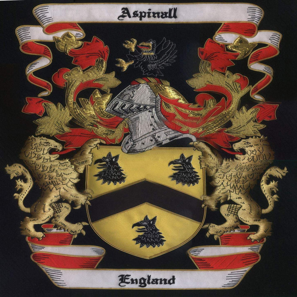 Wholesale Custom Embroidered Banners with Safety Pin Gold Purple Wedding Coat Arms and Family Crest for Parties