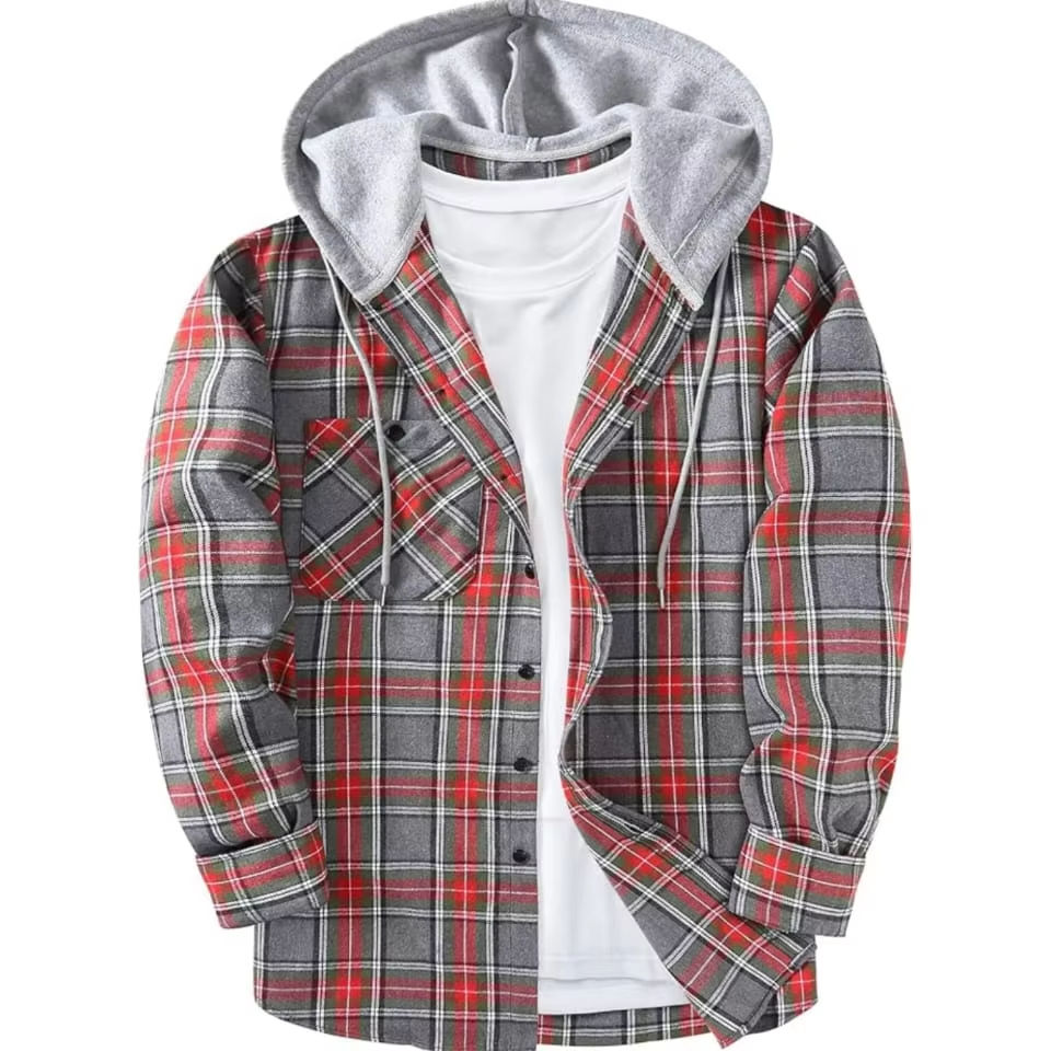 Wholesale Custom Embroidered Flannel TShirt Hoodie Plaid Hooded Shirt Long Sleeve Casual Fashion Outfit For Mens Streetwear