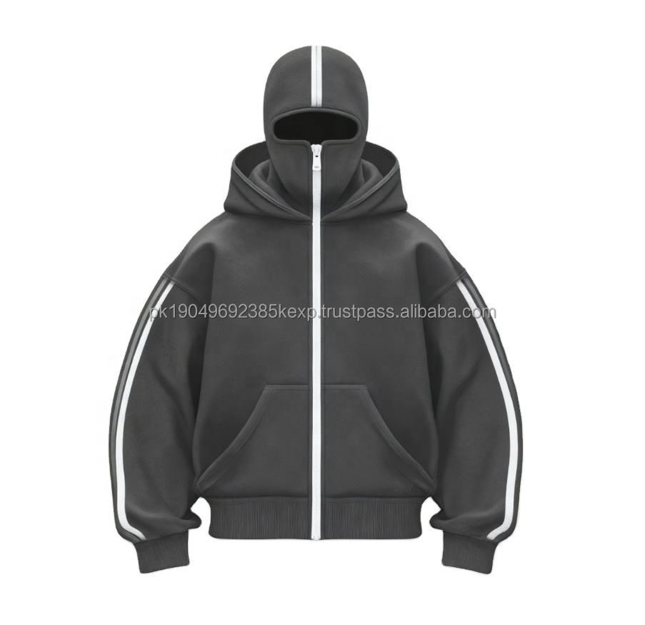 Wholesale Custom Embroidery Double Hooded Ninja Double Layer Pullover Plus Size Heavyweight Full Zip up Balaclava Hoodies Men