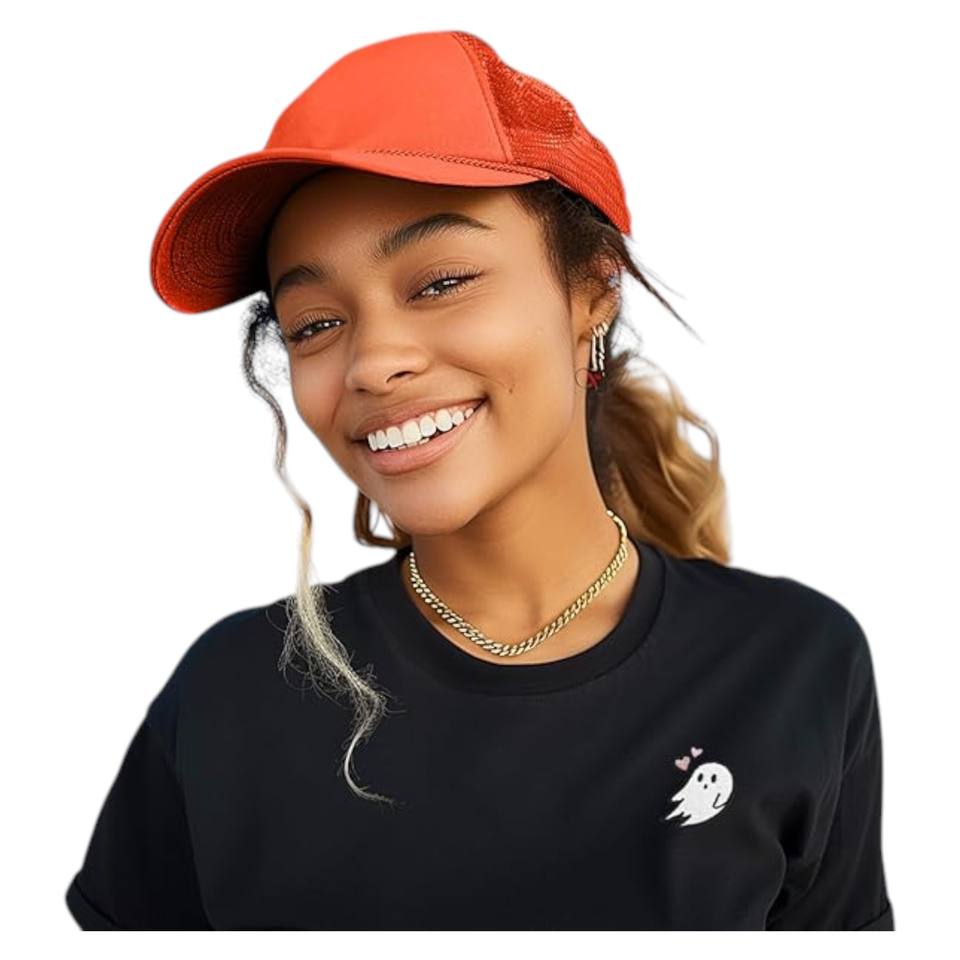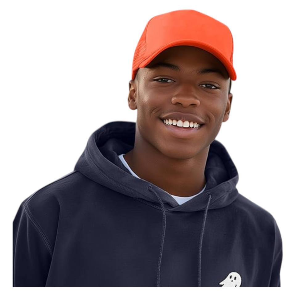 Wholesale Custom Embroidery Logo Polyester 5-Panel Trucker Hats Waterproof Quick Dry Running Baseball Cap with Orange color
