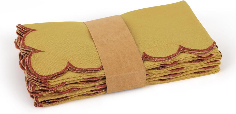 Embroidered Scalloped Home Hotel Elegant Table Linen Cotton Napkin