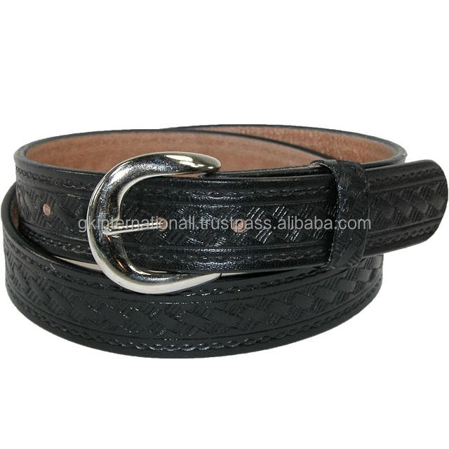 Wholesale Custom Fancy Western Genuine Leather Tooling Belt Cowboy Design Zinc Alloy Buckle Belt for Men and Women